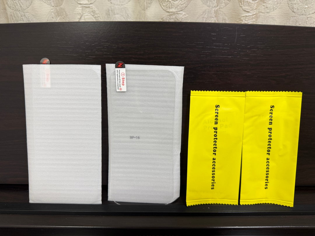 HD tempered glass screen protector & screen cleaning kit, one per order only.